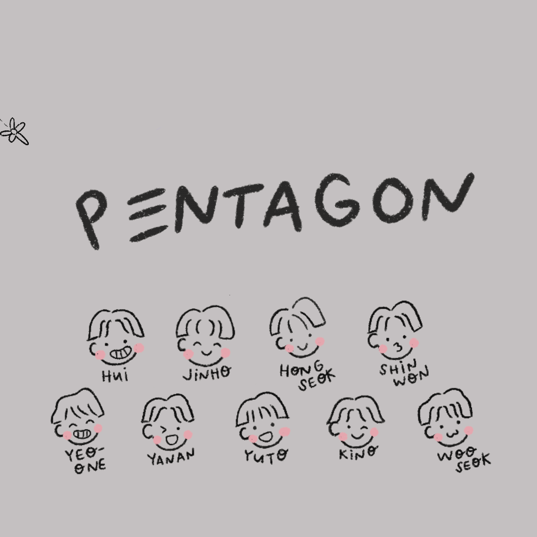 [ID: members of the k-pop group, pentagon, nod happily together. 'daisy' in both korean and english is being written out above them and the words '+spring snow' pop up at the end of the animation. both 'daisy' and 'spring snow' are songs made by the k-pop group]